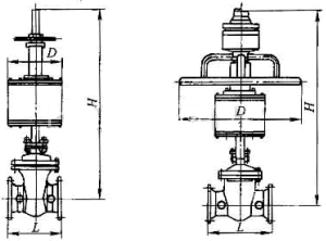 Z6s41H、Z6s41Y 型 PN16~PN63 法蘭連接氣動楔式閘閥:氣動、法蘭連接、明桿楔式剛性單閘板,閥座密封面材料為合金,公稱壓力 PN16~PN63,閥體材料為碳素鋼的閘閥。
