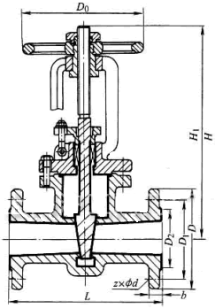 46 型 PN25 氟塑料襯里楔式閘閥主要外形及結(jié)構(gòu)尺寸(mm)