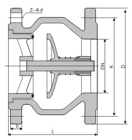 HC41X型消聲止回閥是安裝在水泵出口管道上,用于水泵停機(jī)時(shí)防止介質(zhì)倒流及水錘對(duì)泵的損害。該止回閥閥瓣采用進(jìn)出口兩端中心軸導(dǎo)向,啟閉靈活,可水平安裝或垂直安裝。閥瓣采用彈簧加載,其快速關(guān)閉能有效地消除水錘,密封性能好,關(guān)閉無(wú)噪聲。與靜音止回閥外形較為相似它具有體積小、重量輕、流體阻力小,耐疲勞、壽命長(zhǎng)等優(yōu)點(diǎn)。