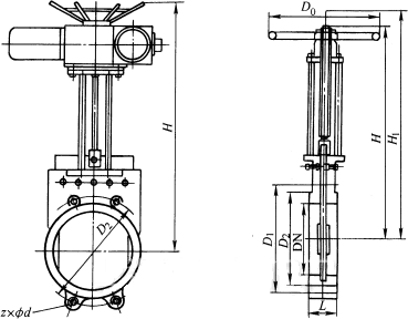 Z73X、Z373X 型 PN2.5、PN6 鑄鐵對(duì)夾式漿液閥主要外形及結(jié)構(gòu)尺寸(mm)